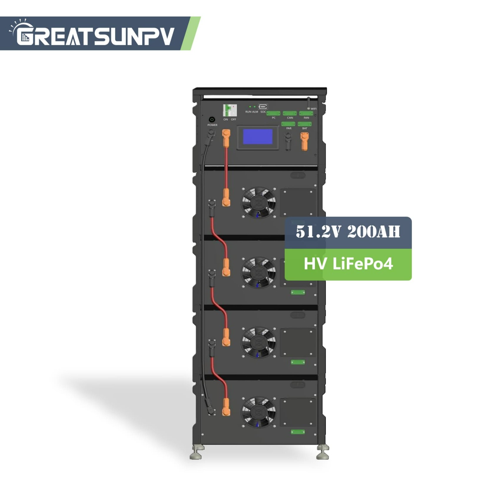 El Módulo de batería de LiFePO₄ de alto voltaje HV-41 de 51,2 V y 200 Ah Está diseñado para aplicaciones de almacenamiento de energía residenciales y comerciales pequeñas que exigen un tamaño compacto, alta seguridad y larga vida útil. Diseñado con un Estructura de montaje en rack que ahorra espacio El HV-41 integra una arquitectura BMS inteligente BCU/BMU de doble capa, un interruptor de corte de protección incorporado y un enfriamiento asistido por ventilador de alto rendimiento con una estructura de flujo de aire de múltiples ventilaciones.